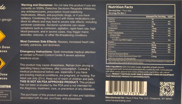 2.5g proprietary blend per Square - 20mg Per Bar Flavor: Dark Chocolate Orange Bar: 8 Squares